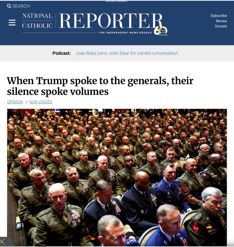 B) Trump suggesting to a captive audience of military leaders to use Merican cities as “training grounds” to battle in a “war from within.”